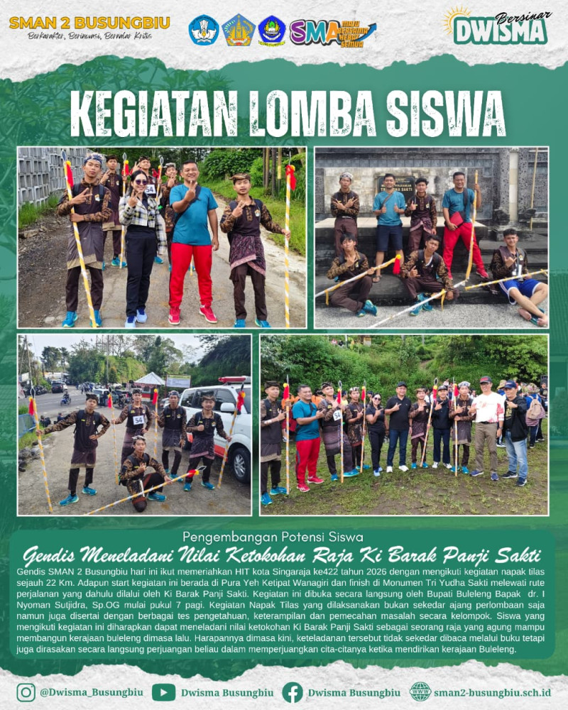 Semangat juang dan kekompakan ditunjukkan oleh siswa SMAN 2 Busungbiu dalam mengikuti kegiatan lomba napak tilas yang diselenggarakan dalam rangka memperingati Hari Ulang Tahun Kota Singaraja ke-422 tahun 2026.